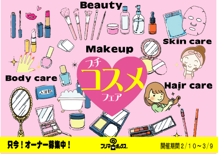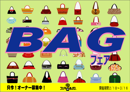 ![]() バッグフェア開催中! 各種バッグと掘り出し物がザクザクありますよ! 3/16まで ![]() レジ前プチイベントコスメフェア! 3月9日まで開催中 ![]() 2026フリマボックスイベントスケジュール ![]() ![]() たいへんお得なキャンペーンになっていますので、 是非、この機会にご利用して頂きます様、 宜しくお願いいたします。 お問い合わせはフリマボックス 木谷まで |